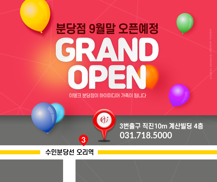 하이미디어 아카데미 분당점으로 9월말 오픈 예정입니다.