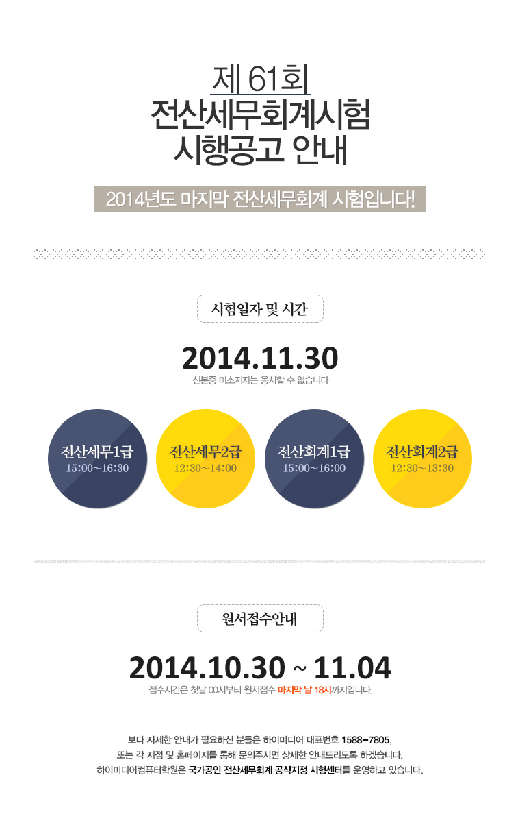 2014년도 마지막 전산세무회계시험 안내