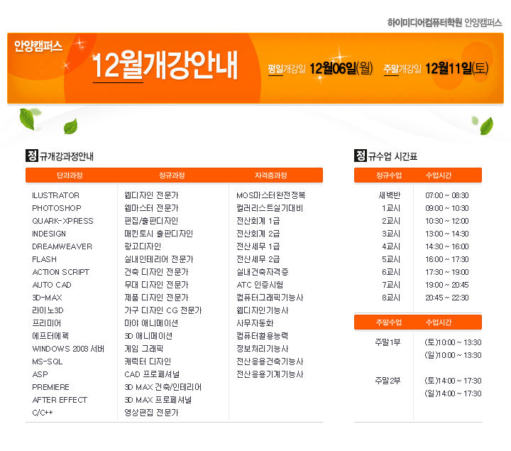 [정규개강] 2010년12월 안양캠퍼스 정규개강안내