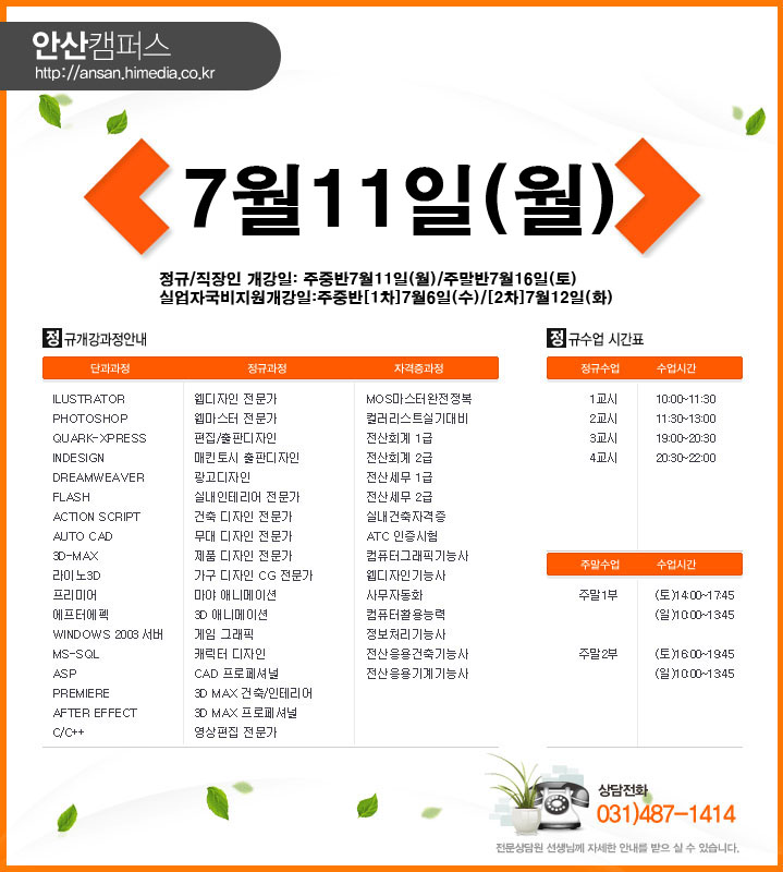 [정규개강]안산캠퍼스 2011년7월 정규개강안내