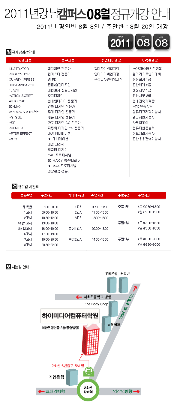 [정규개강] 2011년 8월 정규개강안내