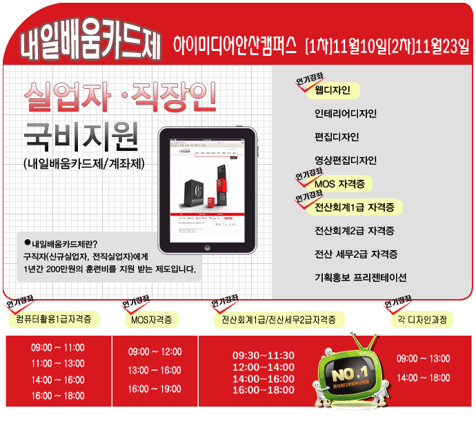 [내일배움카드]안산캠퍼스 2011년11월 계좌제개강안내