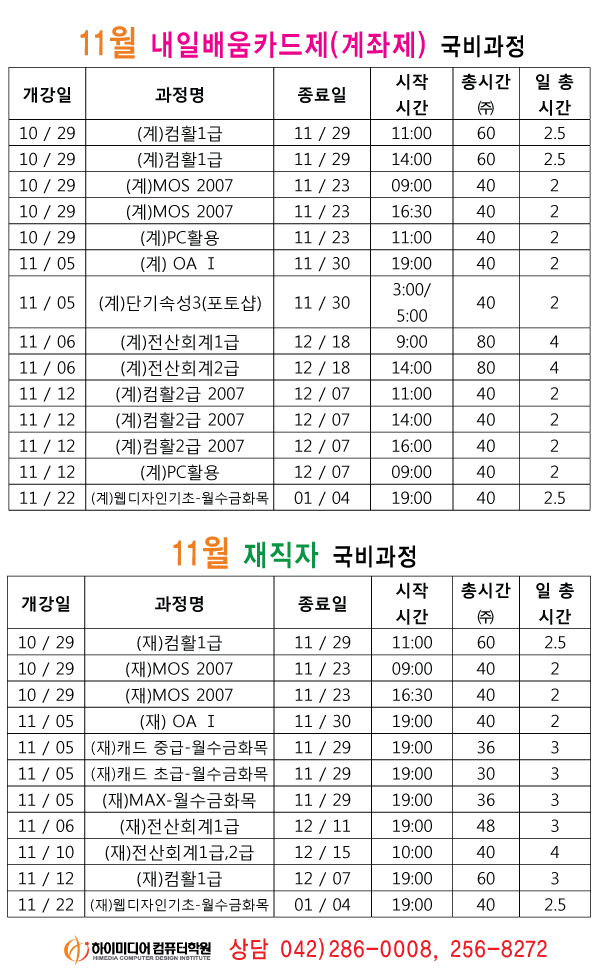 [정규개강]2012년 11월 개강일정입니다.(대전캠퍼스)