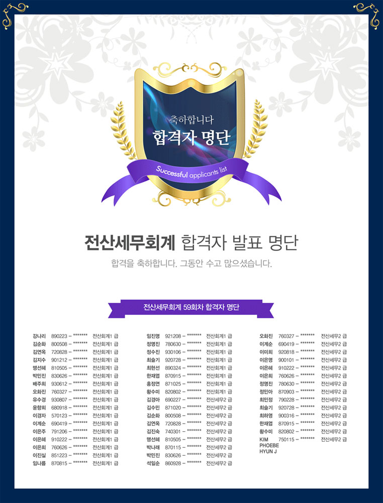 [합격소식] 전산세무회계 59회차 시험 합격자
